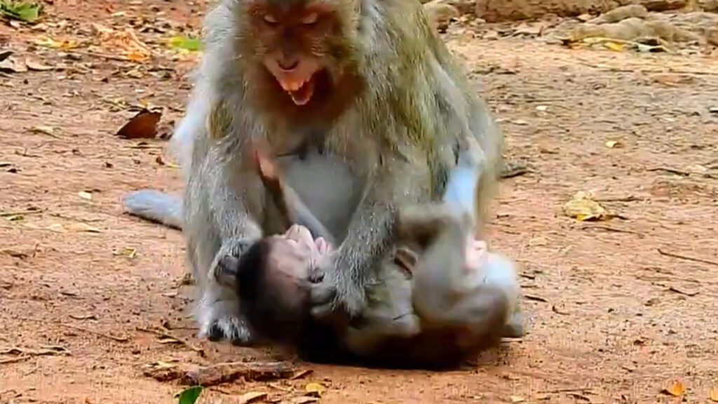 In the quiet corner of the forest, a tiny baby monkey named Mimi clung closely to her mother, hoping for just a moment of warm comfort. Morning sunlight filtered through the trees, and the troop moved steadily along the branches, searching for fresh fruits. But little Mimi’s attention wasn’t on the food scattered around them—she wanted the one thing that meant safety and calm for her: a sip of milk from her mother.