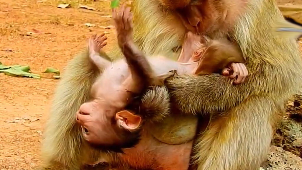 After what felt like forever, an elder monkey came and intervened. Bridget finally let go, her face showing a mix of guilt and confusion. The baby immediately crawled toward his mother, crying even harder until she held him close and offered him milk.