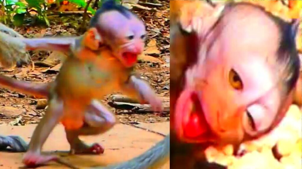 A heartbreaking scene unfolds when a tiny baby monkey desperately tries to escape from the cruel hands of an abductor. The baby’s cries echo through the forest, weak but filled with fear and longing. Its small arms reach out, trembling, as if calling for the warmth and safety of its real mother. The helpless little one doesn’t understand why it has been taken away, why the familiar scent and gentle heartbeat of its mother are suddenly gone.
