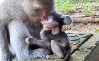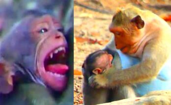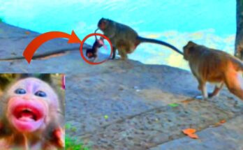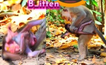 A heartbreaking scene unfolds when a tiny baby monkey desperately tries to escape from the cruel hands of an abductor. The baby’s cries echo through the forest, weak but filled with fear and longing. Its small arms reach out, trembling, as if calling for the warmth and safety of its real mother. The helpless little one doesn’t understand why it has been taken away, why the familiar scent and gentle heartbeat of its mother are suddenly gone.