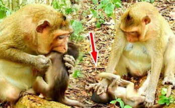 In a heartbreaking moment deep in the forest, a tiny baby monkey faced the harsh side of nature’s discipline. The mother monkey, known for her strong and strict behavior, lost …