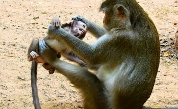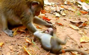 The gentle forest echoed with heartbreaking cries as little macaque baby Million clung desperately to his mother macaque Daniela. His tiny body trembled, his voice raw from constant wailing, yet Daniela turned a cold shoulder. Million’s hunger had gnawed at him since sunrise, and the absence of milk left him weak and desperate. His pleading eyes followed Daniela’s every move, but she only pushed him away whenever he tried to reach for comfort.