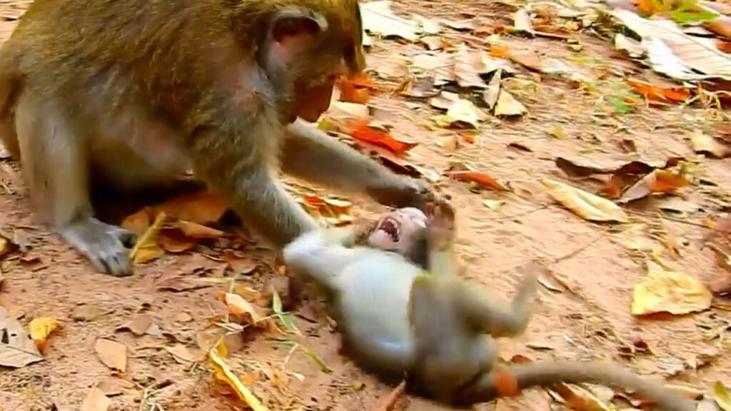 A few minutes later, Didi snuggled close to her mom again, seeking comfort. Monkey Mom groomed her softly, showing that no matter how frustrated she became, her love never faded. The scene ended with the two hugging under the warm afternoon sun—proof that discipline and affection often walk hand in hand in the wild world of monkeys.